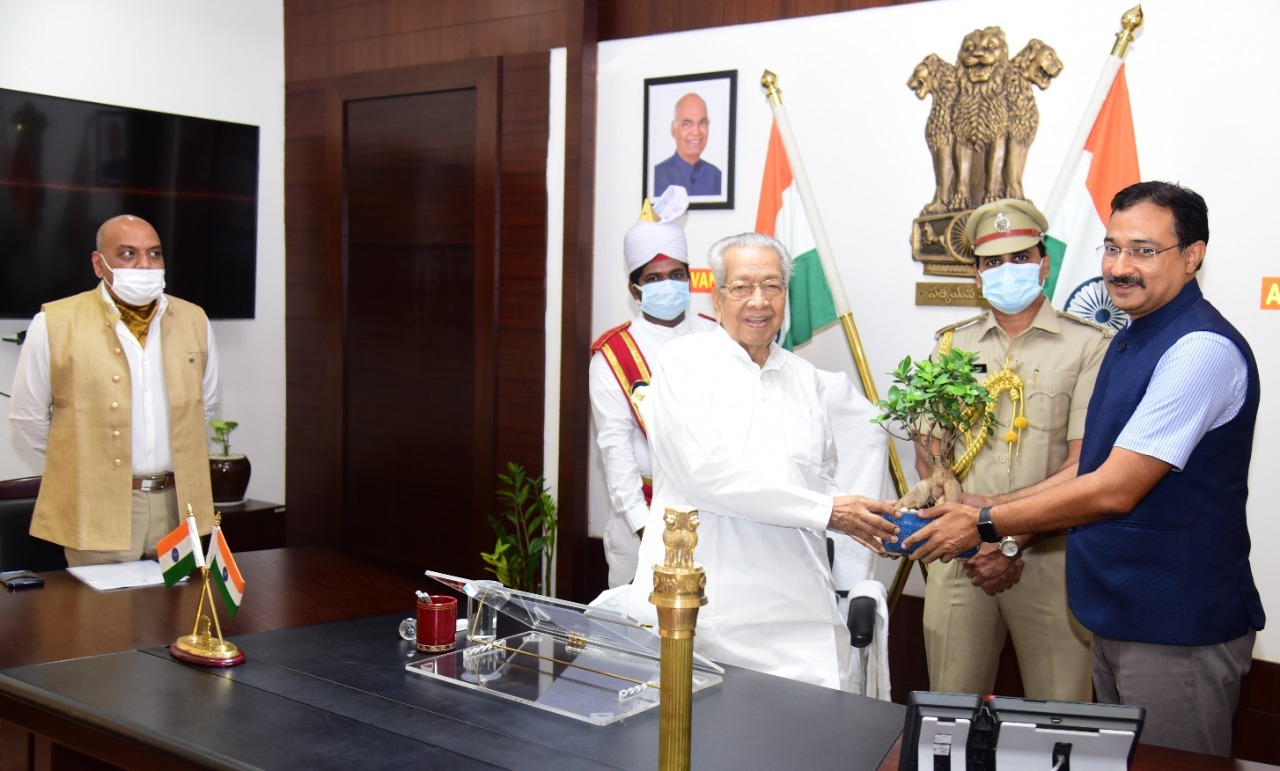 గవర్నర్ ను కలిసిన రాష్ట్ర ప్రధాన ఎన్నికల అధికారి ముకేష్ కుమార్ మీనా