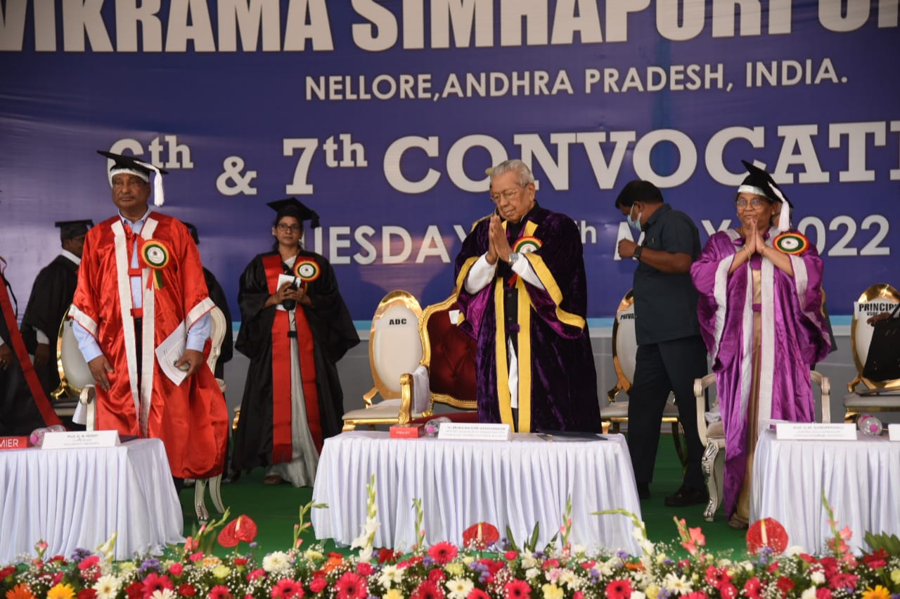 దేశభవితను కాపాడగల సత్తా యువతకి విద్యతోనే వస్తుందని గవర్నర్ బిశ్వభూషణ్ హరిచందన్ అన్నారు. నెల్లూరులోని విక్రమ సింహపురి విశ్వవిద్యాలయంలో స్నాతకోత్సవం నిర్వహించారు. పీహెచ్డీ, పీజీ విద్యార్థులకు గవర్నర్ గోల్డ్ మెడల్స్, పట్టాలు అందజేశారు. అనంతరం గవర్నర్ మాట్లాడుతూ యువత ఉన్నత చదువులు చదివి ప్రజలకు ఉపాధి అవకాశాలు కల్పించాలన్నారు. దేశవ్యాప్తంగా ఇటీవల ఉన్నత విద్య అందుబాటులోకి వచ్చిందన్నారు. యువత నైపుణ్యం పెంపొందించుకోవాల్సిన అవసరం ఉందని సూచించారు. 2025 నాటికి దేశంలో 1.2 కోట్ల మంది యువత స్కిల్ డెవలప్మెంట్లో శిక్షణ పొందాలని గవర్నర్ తెలిపారు. యూనివర్సిటీలో చదువు పూర్తి చేసి దేశవిదేశాలకి వెళ్తారని ఎక్కడికి వెళ్లినా మాతృభూమిని మర్చిపోవద్దని, సామాజిక బాధ్యతని తప్పకుండా పాటించాలని విద్యార్థులకు సూచనలు చేశారు. దేశం కోసం పోరాడిన స్వతంత్ర సమరయోధులని ఆదర్శంగా తీసుకోవాలని గవర్నర్ పేర్కొన్నారు.